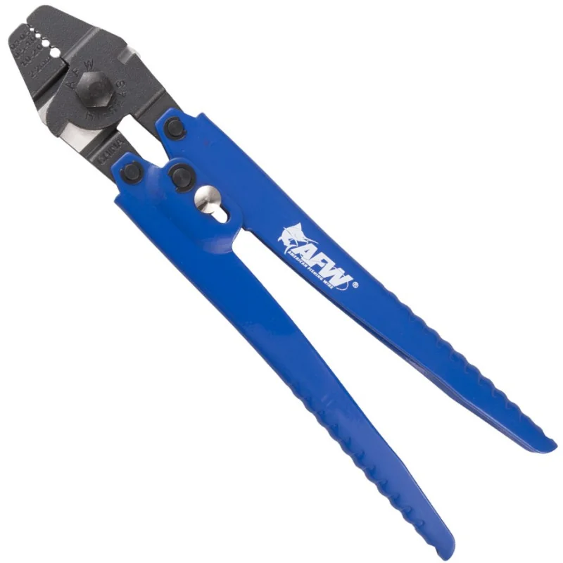 Firma AMERICAN FISHING WIRE, producent doskonałych plecionek stalowych na przypony, przygotowała pod własnymi markami A.F.W. oraz HI-SEAS różne rodzaje narzędzi do własnoręcznego zaciskania tulejek metalowych przy samodzielnym montażu przyponów. Wysoka jakość materiału i szeroki zakres zastosowania do różnych grubości linek.