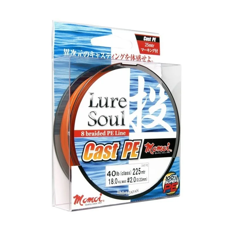 Silikonowe pokrycie zmniejsza też znacząco tarcie pomiędzy plecionką a pierścieniami przelotek. Polecamy ją zarówno do lżejszego spinningowania jak i do łowienia ciężkimi Jerkami. LureSoul Cast P.E. oferowana jest w kolorze pomarańczowym ze znacznikami, na szpulach po 150 metrów. Dostępny jest zakres średnic od 0,10 do 0,23 mm, przekładający się na wytrzymałości od 9 do 40 lb (4,10 do 18,00 kg).