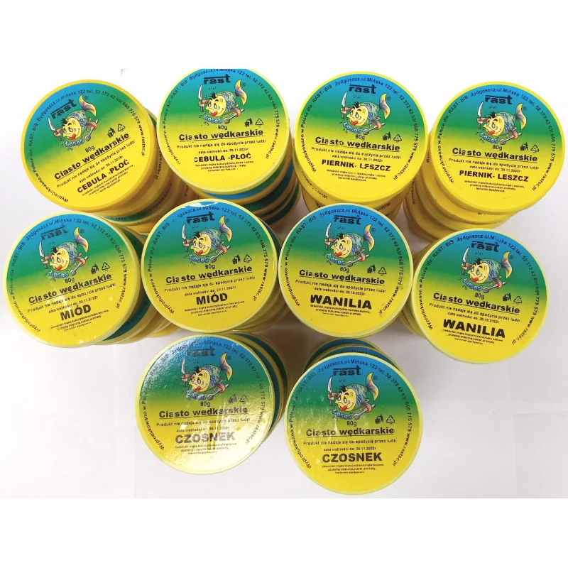 Gotowe do użycia ciasto firmy Rast. Bardzo intensywny zapach sprawdzi się przy połowie wszystkich ryb karpiowatych.