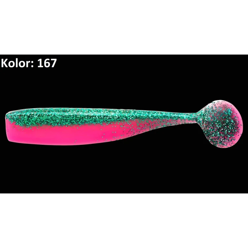 Guma Shaker występująca w bardzo łownych kolorach od perły po gumy w ciemnych kolorach z dodatkowym brokatem. Gumy są killerem na naszych łowiskach zarówno na okonie jak i sandacze. Gumy najlepiej zbroić w krótkie haki, dzięki którym jej praca będzie nienaganna. Nazwa shaker nie jest użyta przypadkowo guma wykonuje wręcz kosmiczne obroty przy nawet wolnym prowadzeniu. Co jest charakterystyczne dla tej gumy pracuje ona nie tylko ogonem, ale również całym tułowiem.