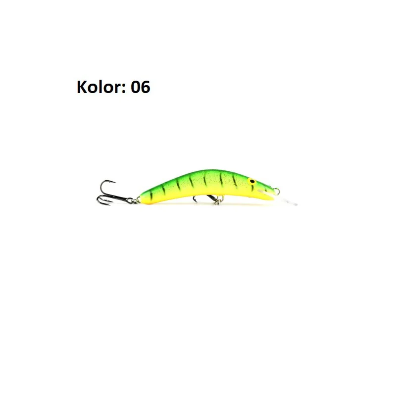 Wobler o wyraźnej, ogonowej akcji. Tak jak większość naszych woblerów charakteryzuje się agresywną pracą. Jego specyficzny kształt powoduje, że ten wobler sprawdza się zarówno przy połowie troci, łososi jak i szczupaków oraz sandaczy.