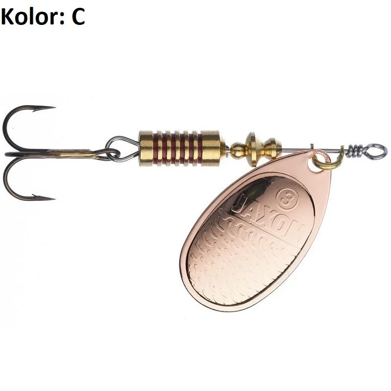 Błystki obrotowe Jaxon Holo Select Classic Flash A z motywem rybiej łuski wytrawianym na powierzchni skrzydełka.