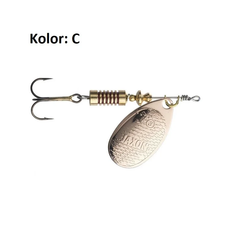 Błystki obrotowe Jaxon Holo Select Troffy z charakterystycznym szerokim skrzydełkiem.