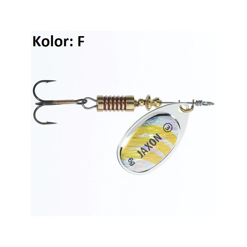 Błystki obrotowe Jaxon Holo Select Troffy z charakterystycznym szerokim skrzydełkiem.