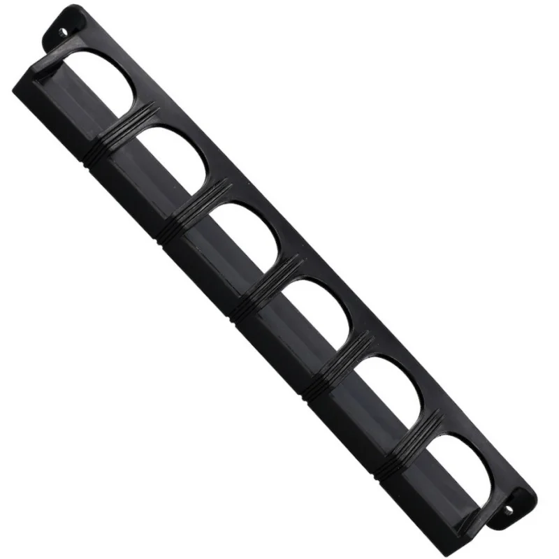 Łatwy w montażu uchwyt na 6 wędek przechowywanych w pozycji stojącej np. na ścianie garażu. Lekki i kompaktowy, wyposażony w bezpieczną dla blanku piankę. W komplecie kołki montażowe.