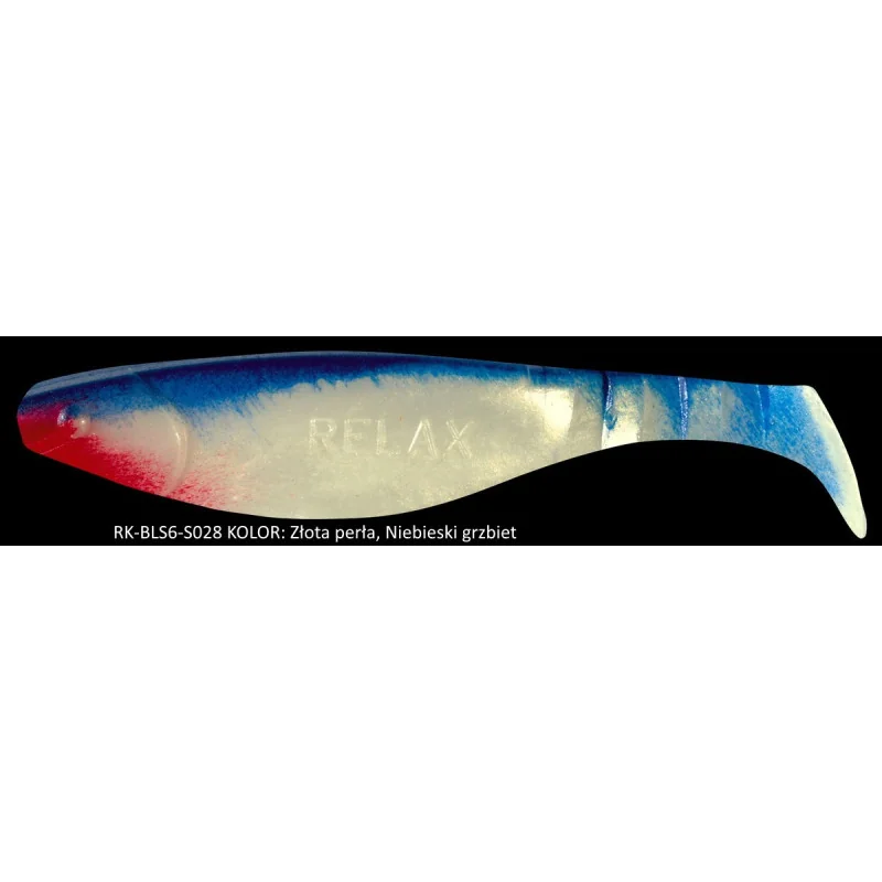S274 Korpus pomarańczowy, perłowy niebieski brokat Ogon: czerwony