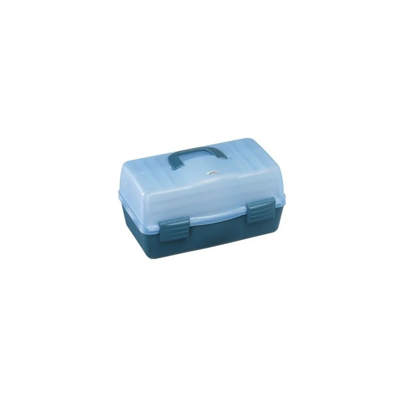 Duża skrzynka wędkarska z sześcioma szufladami.