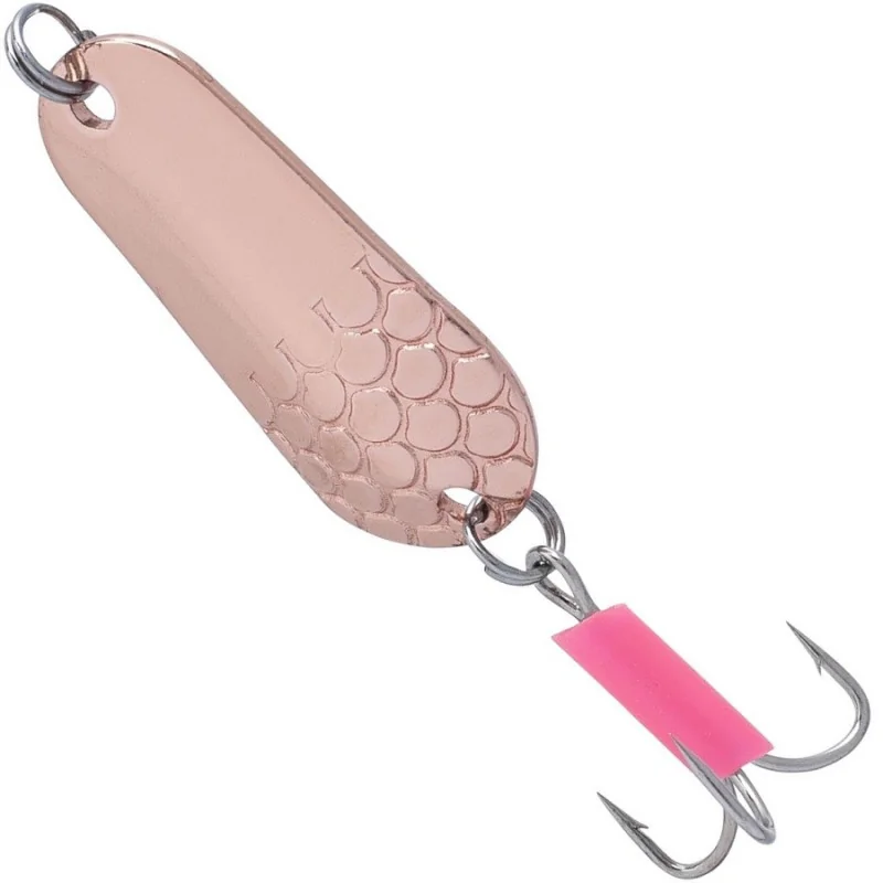 Błystki wahadłowe Mikado Trython to klasyczne wahadłówki o sprawdzonym kształcie i udowodnionej skuteczności. Mocne kółka łącznikowe, ostre kotwice i trwałe pokrycie galwaniczne połączone z odpowiednim tłoczeniem i wzorem łuski to recepta na najskuteczniejsze przynęty.