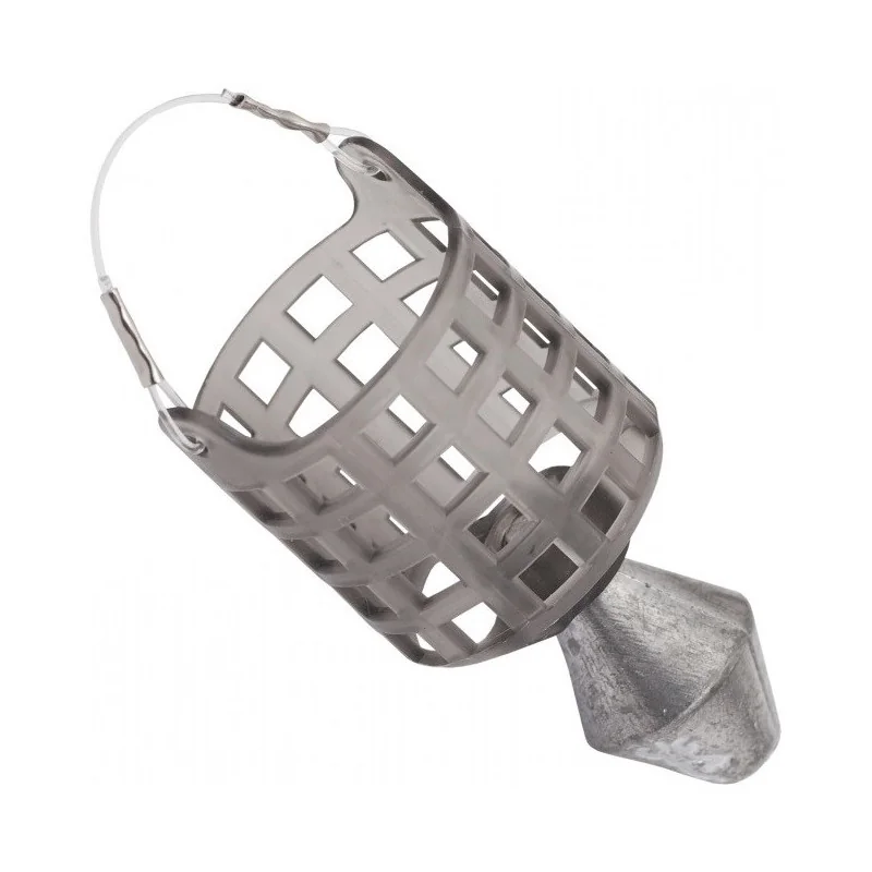 Wymienny, aerodynamiczny, ołowiany ciężarek może być zamieniony w kilka sekund. Innowacyjna konstrukcja pozwala nam wypełnić koszyk dużą ilością grubszej frakcji bez możliwości wypadania jej podczas zarzucania. Specjalne gniazda na dole koszyczka ułatwiają szybsze uwalnianie się zanęty z podajnika.
