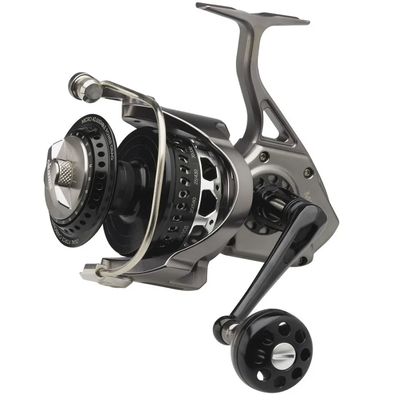 • Wycinana z aluminium anodyzowana szpula w 2 odcieniach z brzegiem szpuli LCS,