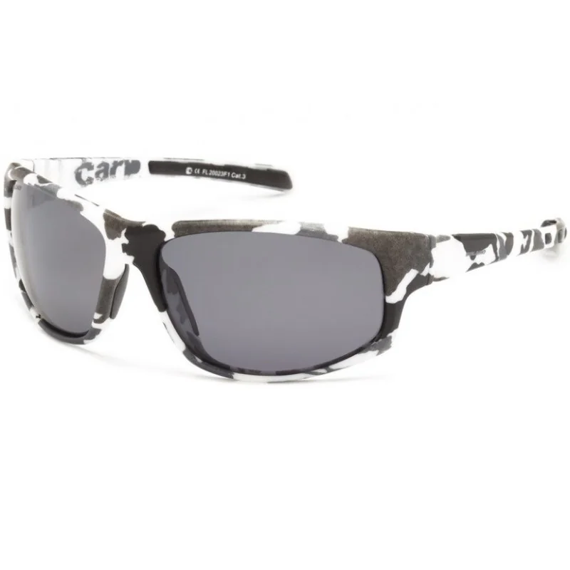 Okulary polaryzacyjne Solano FL 20023F1 XXL wyposażone w szare szkła z filtrem UV i poliwęglanowymi ramkami we wzorze moro. Oprawki, soczewki oraz mostek na nos w tych okularach są większe, przez co są one jeszcze wygodniejsze.