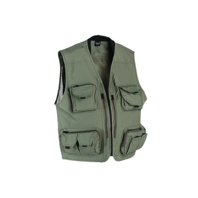 Kamizelka wędkarska Jaxon UJ-FRL w uniwersalnym, zielonym kolorze z kilkoma bardzo przydatnymi kieszeniami.