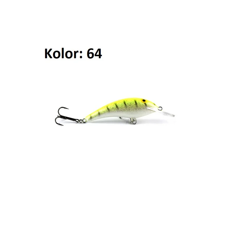 Wobler o wyraźnej, ogonowej akcji. Tak jak większość naszych woblerów charakteryzuje się agresywną pracą. Wybór kolorów przy tym modelu jest bardzo szeroki, znajdzie się coś na trociowe wypady jak również na wyprawę na rzeczne sandacze i szczupaki. Okonek 7,5cm występuje również w wersji z długim sterem (typu Super Deep Runner).
