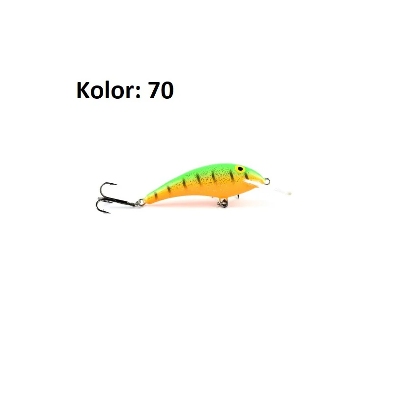 Wobler o wyraźnej, ogonowej akcji. Tak jak większość naszych woblerów charakteryzuje się agresywną pracą. Wybór kolorów przy tym modelu jest bardzo szeroki, znajdzie się coś na trociowe wypady jak również na wyprawę na rzeczne sandacze i szczupaki. Okonek 7,5cm występuje również w wersji z długim sterem (typu Super Deep Runner).