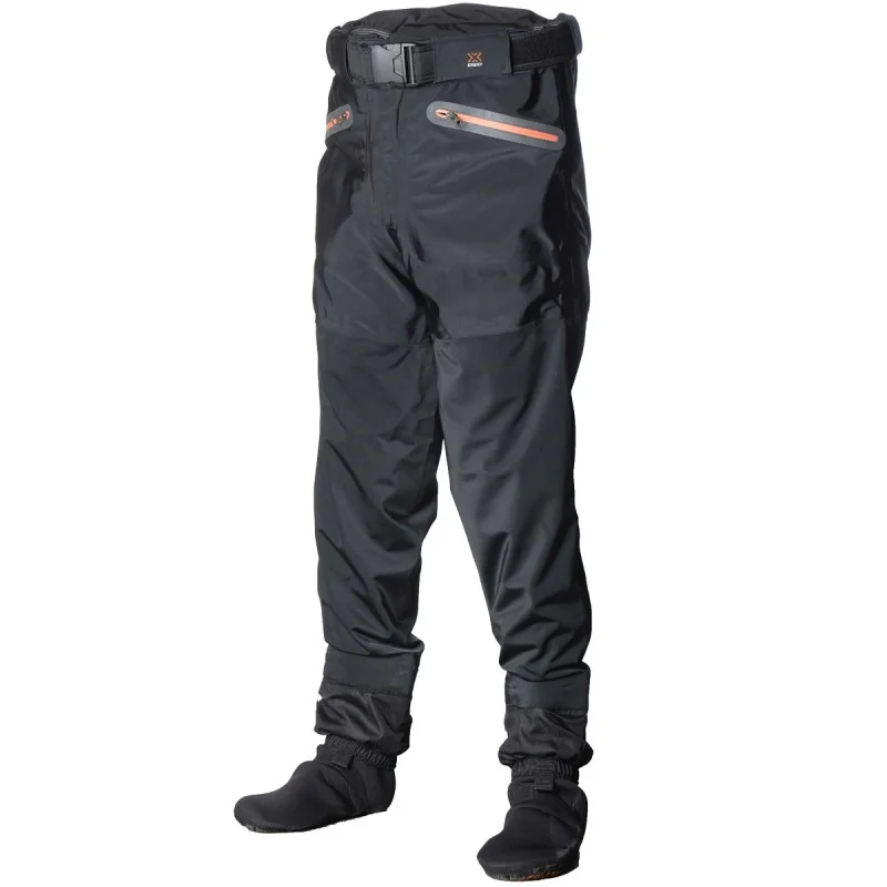 Innowacyjne spodniobutyScierra X-Stretch Waist Wader Stocking Foot wyposażone w superlekkie buty z pianki EVA.