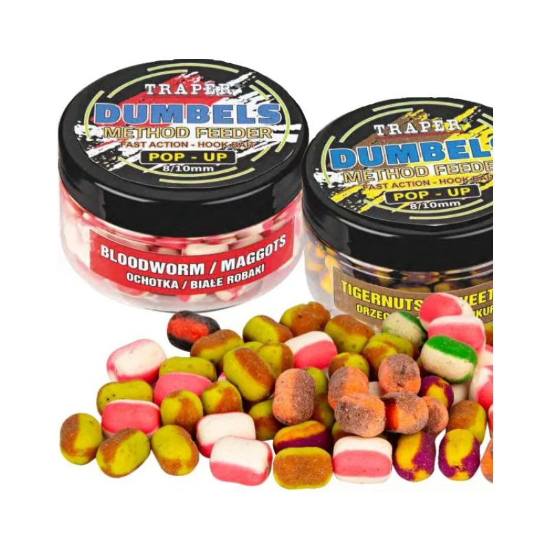 Bardzo atrakcyjna, dwukolorowa przynęta, w której zastosowano kompozycję dwóch różnych zapachów. Dzięki zastosowaniu naturalnych składników najwyższej jakości oraz procesowi zaawansowanej technologii produkcji Dumbels Duo Color zaskakuje szybkością działania przewyższając tym inne przynęty. Odpowiednia wielkość, różnorodność kolorów, wyrafinowane zapachy, właściwości stopniowego uwalniania aromatu i składników to główne zalety tego produktu. wszystkie te cechy dają gwarancję skuteczności. Szczególnie polecane na łowiska poddane dużej presji wędkarskiej oraz akweny komercyjne.