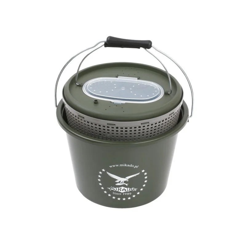 Profesjonalne wiadro do transportu żywców. Wykonane z trwałego plastiku, pozwala na transport żywych rybek na duże odległości. Dwuwarstwowa budowa pozwala na łatwe wyjęcie ażurowego wkładu z rybami i umieszczenie go w w jeziorze lub rzece na czas wymiany wody w wiadrze. Pojemniki posiadają otwór przez który można podłączyć pompkę napowietrzacza.