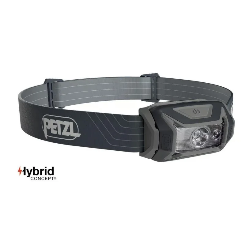 Latarka czołowa Petzl Tikka. Prosta i kompaktowa latarka czołowa TIKKA o jasności 300 lumenów oraz o szerokiej wiązce bliskiego zasięgu, umożliwiającej krótkie przemieszczanie się. Dzięki długiemu czasowi świecenia znajduje zastosowanie w aktywnościach outdoorowych jak biwakowanie, trekking, podróże. Fosforyzujący reflektor umożliwia odnalezienie latarki w ciemności, a czerwone światło nie oślepia innych osób. TIKKA jest zasilana trzema bateriami, jest też kompatybilna z akumulatorem CORE, dzięki konstrukcji HYBRID CONCEPT. Latarkę można założyć na kask każdego typu lub na rower przy używając mocowań dostępnych jako akcesoria.