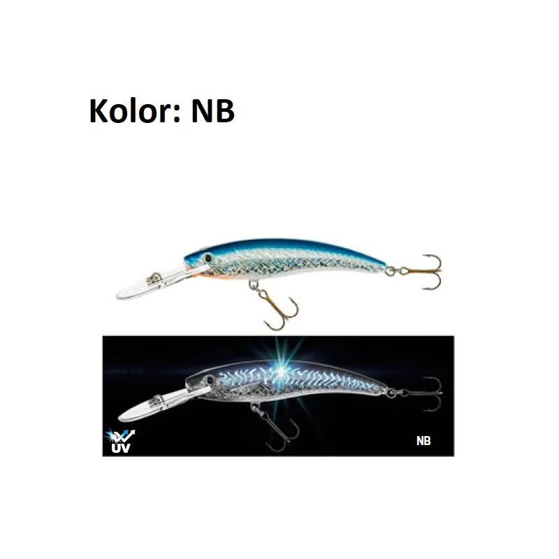 Wydłużone, smukłe woblery Jaxon Holo Select Diver UV z wydłużonym sterem, pokryte specjalną farbą UV.