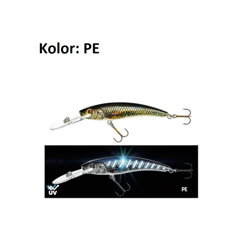 Wydłużone, smukłe woblery Jaxon Holo Select Diver UV z wydłużonym sterem, pokryte specjalną farbą UV.