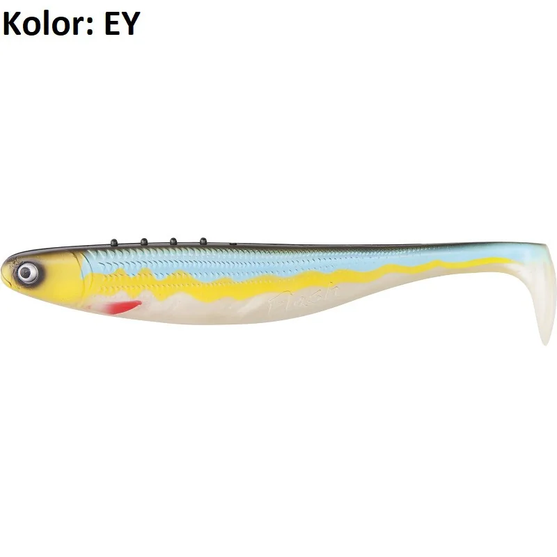 Flash jest dopracowany w najmniejszym detalu, od kształtu, proporcji i miękkości gumy zaczynając a na pięknym, ręcznym malowaniu kolorów kończąc. Ma solidny, ale dość niski i wydłużony korpus, przecieniony przegub ogona i duże kopyto na jego końcu. Pracuje spokojnie i pewnie, zarówno samym ogonkiem jak i bokami, lusterkując w sposób wabiący każdego szczupaka na swojej drodze. Perfekcyjnie imituje lekko ranioną czy chorą rybę, a to zawsze zwraca uwagę drapieżników, wybierających instynktownie najłatwiejszą ofiarę. Możesz go uzbroić w ciężarek z korkociągiem i dwie dozbrojki, gotowy systemik lub główkę jigową z dodaną pojedynczą dozbrojką. Lekko i ciężko, do łowienia na płyciznach i na głębokich stokach. Flash zawsze będzie bezkonkurencyjny!