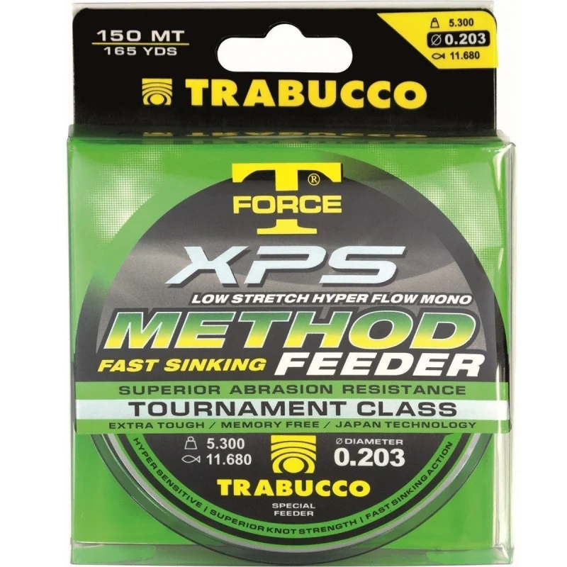 Żyłka Trabucco XPS Method Feeder. Szybko tonąca żyłka specjalnie zaprojektowana do łowienia na method feeder. Trójwarstwowa struktura składająca się z wewnętrznego rdzenia pokrytego powłoką ceramiczną, warstwy odpornej na ścieranie oraz zewnętrznej powłoki silikonowej. Mało rozciągliwa o dużej czułości, bez efektu pamięci. Kolor jasnobrązowy.