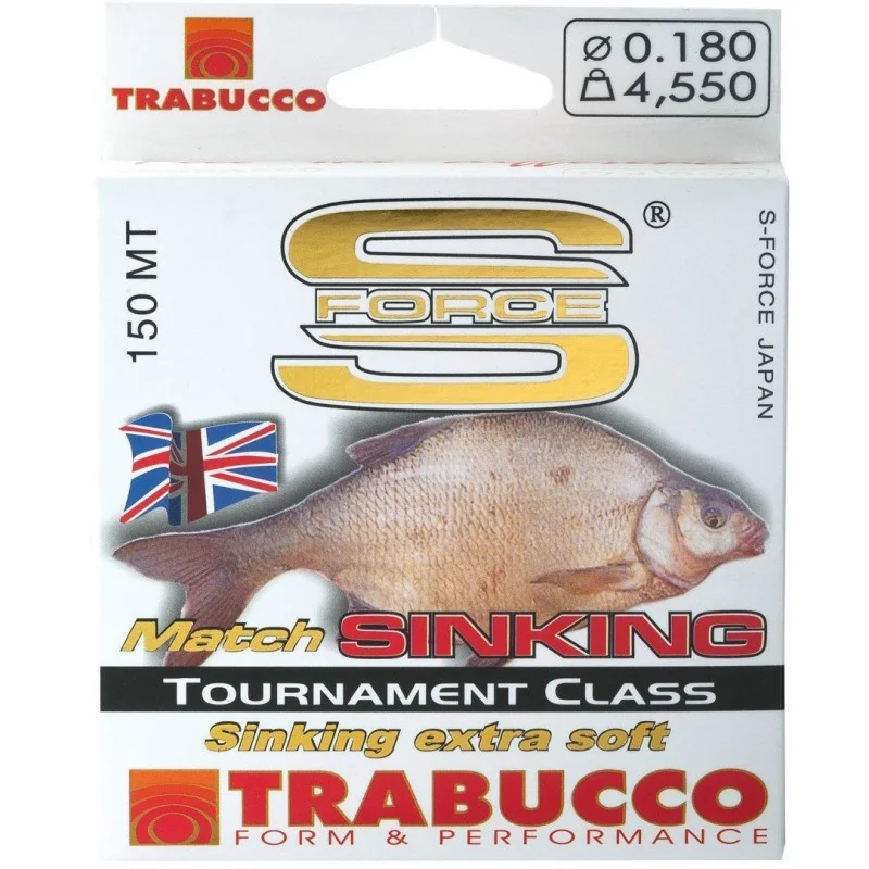 Żyłka Trabucco Match Sinking przeznaczona do metody odległościowej. Wielowarstwowa struktura zapewnia połączenie wielu cech, które sprawiają, że żyłka S-FORCE MATCH nigdy nie zawiedzie wędkarza. Powłoka silikonowa ogranicza tarcie po przelotkach, umożliwiając długie i celne rzuty, oraz sprawia, że żyłki te nie ścierają się i dłużej zachowują swoje parametry. Rdzeń z ceramiczną powłoką zapewnia odpowiednią rozciągliwość, zdolność do tonięcia oraz niewiarygodny, całkowity efekt braku pamięci. Żyłka koloru ciemnoniebieskiego, prawie czarna. Dostępna w szpulach 150-metrowych w pojedynczych pudełkach.