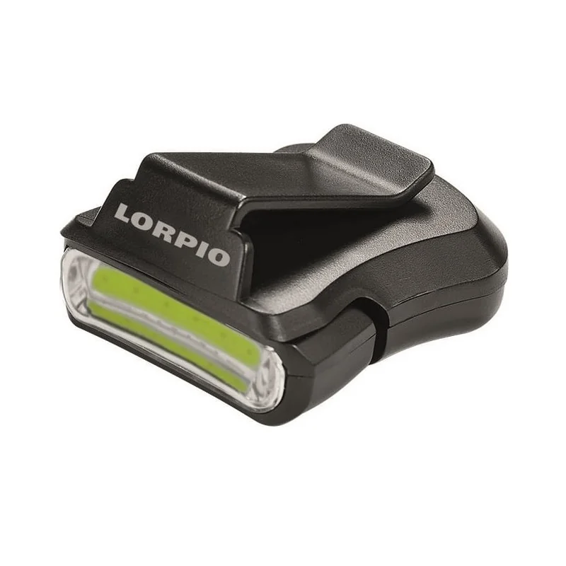 Latarka Lorpio z klipsem do zamocowania na daszku czapki. Wykonana z tworzywa ABS. Posiada regulowany kąt świecenia.