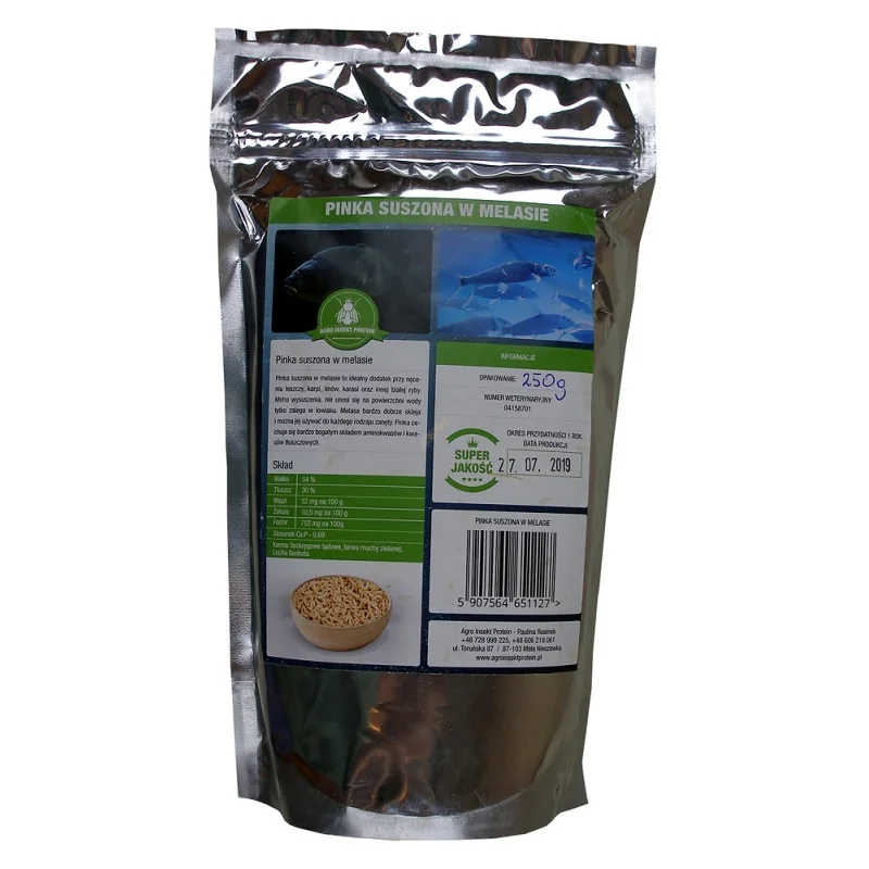 Suszone pinki, bądź białe robaki dodatkowo wysuszone zostały w melasie, co wydłuża ich świeżość oraz dodatkowo pełni funkcje wabiące szczególnie na takie ryby jak płocie czy leszcze.