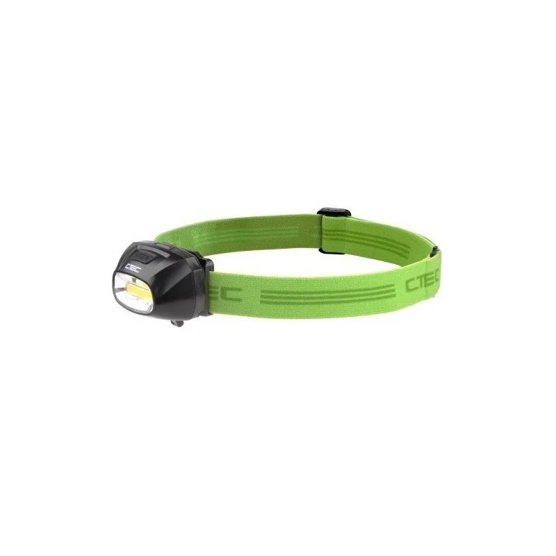 Latarka czołowa C-Tec z diodą LED typu COB o mocy świecenia 210 lumenów. Latarka posiada klasę szczelności IPX4.