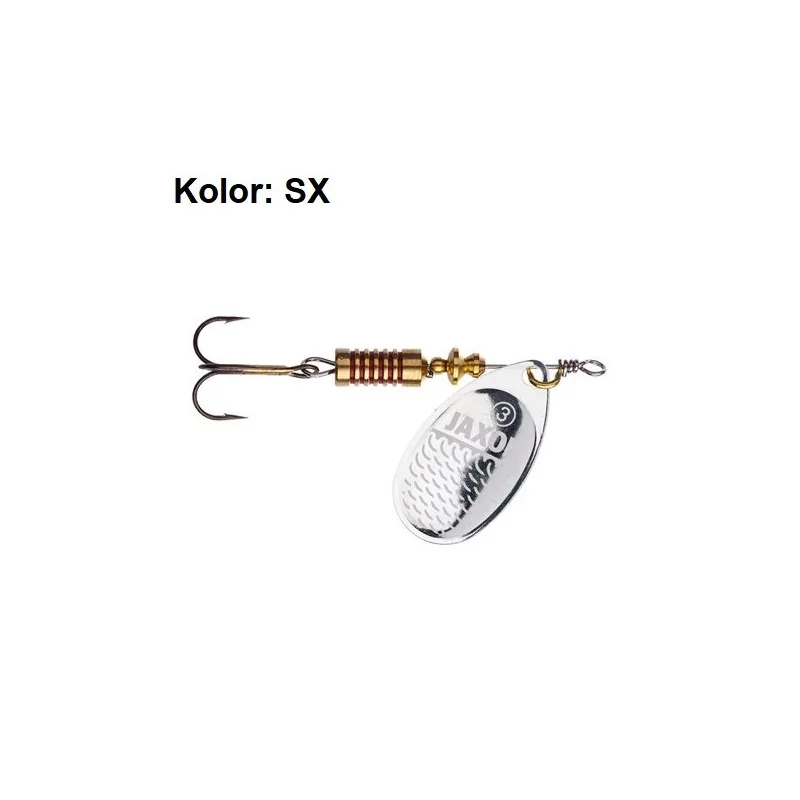Błystki obrotowe Jaxon Holo Select Classic Flash A z motywem rybiej łuski wytrawianym na powierzchni skrzydełka.