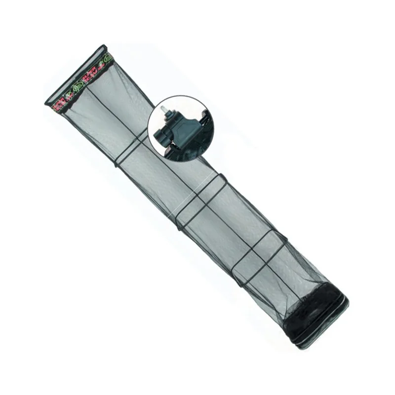 Prostokątny kształt obręczy o wymiarach 35x45 cm, nieco mniejsza niż siatki zawodnicze. Wygodna w transporcie, bardzo lekka i poręczna, zmieści się w każdym pokrowcu lub torbie wędkarskiej. Wykonana z super szybko schnącego materiału ograniczającego wydzielanie przykrego zapachu po rybach. Pierwsza obręcz oraz dwie ostatnie aluminiowe, aby dociążyć siatkę w wodzie. Mocny regulowany uchwyt z możliwością ustawienia siatki pod dowolnym kątem.