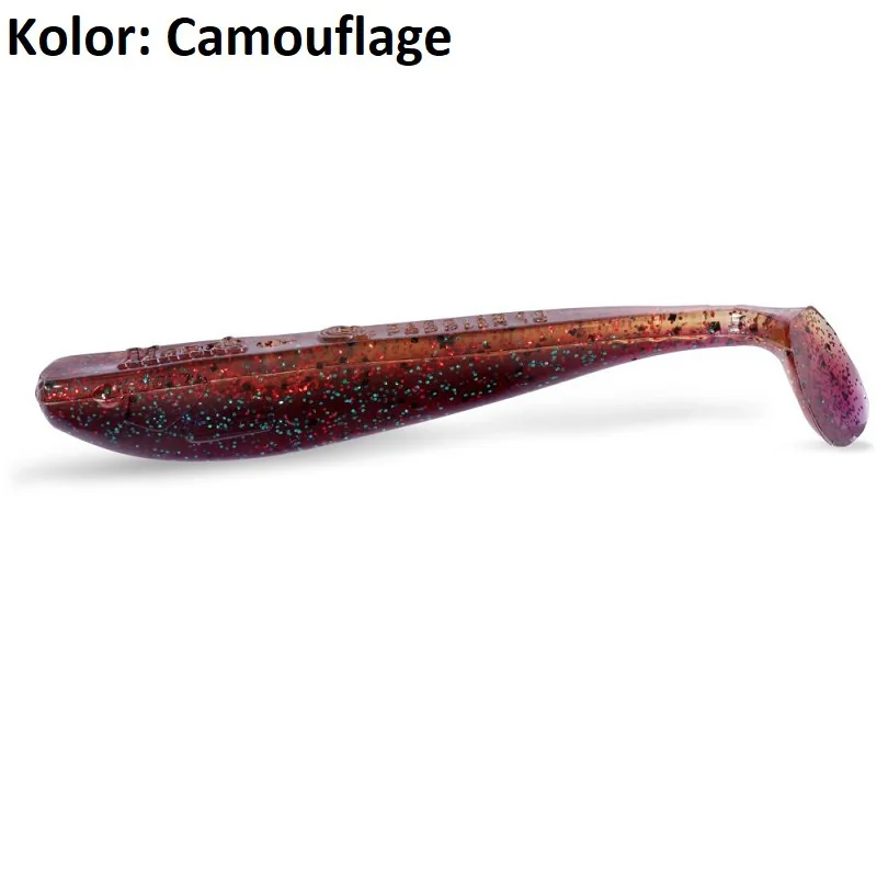 Realna, drobna budowa miękkich przynęt typu no-action, ze spłaszczoną częścią tylną, odpowiedzialną za falowanie gumy o wysokiej częstotliwości. Szeroka główka gwarantuje doskonałą stabilność i wytwarza nęcące przemieszczenie się wody nawet przy najmniejszym podciągnięciu. Co więcej, ogon w kształcie łopatki ustawiony jest pod kątem, co zawsze generuje wabiące machanie tam i z powrotem niezależnie od prędkości ściągania oraz podskakuje wysoko bez nadmiernego skręcania!