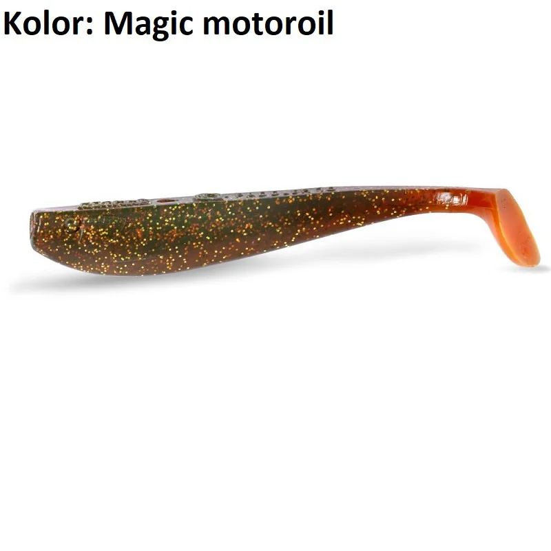 Realna, drobna budowa miękkich przynęt typu no-action, ze spłaszczoną częścią tylną, odpowiedzialną za falowanie gumy o wysokiej częstotliwości. Szeroka główka gwarantuje doskonałą stabilność i wytwarza nęcące przemieszczenie się wody nawet przy najmniejszym podciągnięciu. Co więcej, ogon w kształcie łopatki ustawiony jest pod kątem, co zawsze generuje wabiące machanie tam i z powrotem niezależnie od prędkości ściągania oraz podskakuje wysoko bez nadmiernego skręcania!