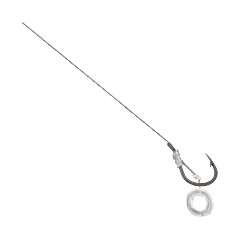 Przypon z haczykiem Traper Method Feeder Classic Ring z zadziorem i z silikonowym pierścieniem do dumbelsów i pelletów, Haczyki są niezwykle mocne i ostre. Do przyponów zastosowano najwyższej klasy, elastyczną, monolityczną żyłkę o odpowiedniej grubości w stosunku do wielkości haka.