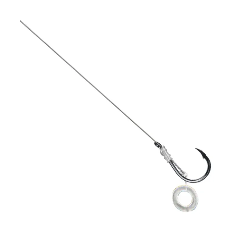 Przypon z haczykiem Traper Method Feeder Select Ring z zadziorem i z silikonowym pierścieniem do dumbelsów i pelletów, Haczyki są niezwykle mocne i ostre. Do przyponów zastosowano najwyższej klasy, elastyczną, monolityczną żyłkę o odpowiedniej grubości w stosunku do wielkości haka.