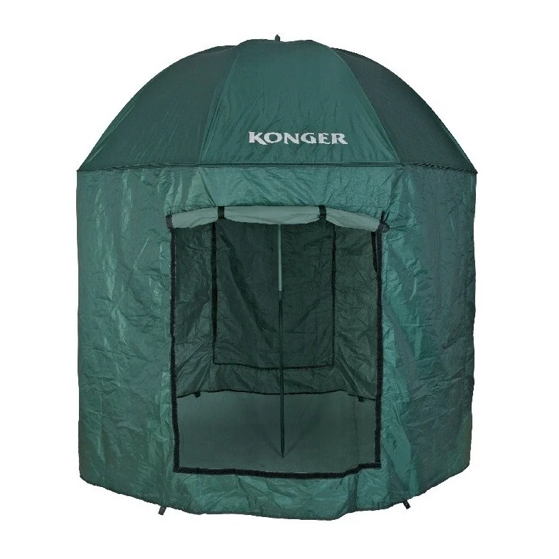 Parasole są wykonane z wysokiej jakości materiałów, wyposażone w łamaną, regulowaną czaszę i sztycę zakończona gwintem. Dzięki temu parasol można stabilnie zamocować na większości brzegów. W komplecie znajduje się także metalowy pręt ułatwiający wkręcanie sztycy. W tym modelu występuje załączona osłona chroniąca przed wiatrem i deszczem przyczepiana do parasola za pomocą zamka błyskawicznego i rzepów, a do podłoża za pomocą szpilek. W komplecie są także dwie linki, którymi można przywiązać parasol do ziemi w czasie silnego wiatru. Pod takim półnamiotem można komfortowo spędzić czas nad wodą nawet w bardzo niekorzystnych warunkach atmosferycznych.