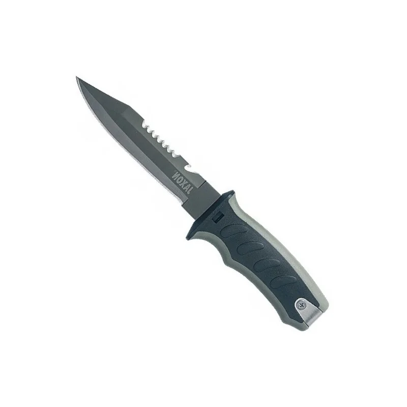 Wędkarski nóż Jaxon z wyprofilowaną wygodną rękojeścią. Ostrze noża jednostronnie ząbkowane. Ostrze noża wykonane z grubej mocnej stali. Nóż w dodatkowym plastikowym etui z dodatkowym zabezpieczeniem przy wyciąganiu nóż blokuje się dopiero po naciśnięciu blokady nóż płynnie wysuwa się z etui. System zabezpieczający uchroni nas przed skaleczeniem. Dodatkowo do etui są dołączone dwa gumowe, regulowane paski.