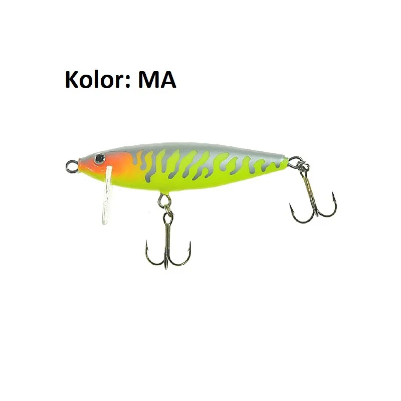 Jaxon Holo Select Bolek VJ-BL. Smukły wobler kształtem zbliżony do uklei przeznaczony do połowu boleni, szczupaków oraz troci. Dobrze wyważona przynęta z prostopadle umieszczonym sterem która doskonale poradzi sobie w nurcie rzeki. Skuteczność i atrakcyjność podnosi grzechotka w korpusie wabiąc nawet mniej aktywne drapieżniki. W ofercie znalazło się wiele wariantów kolorystycznych.