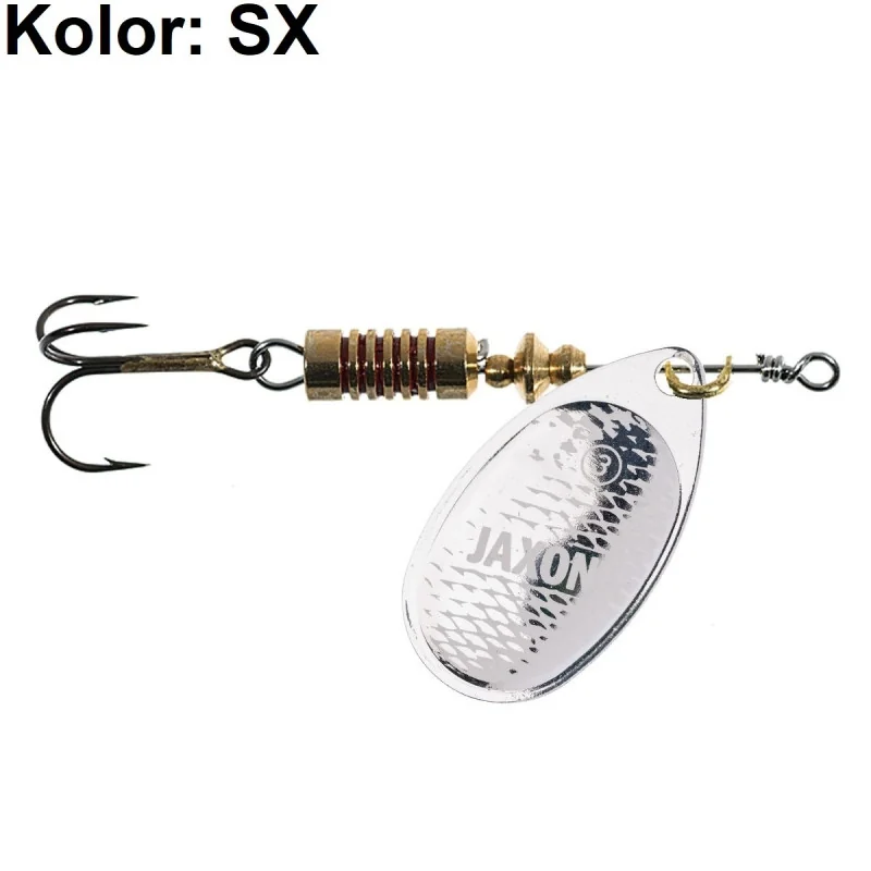 Błystki obrotowe Jaxon Holo Select Troffy z charakterystycznym szerokim skrzydełkiem.
