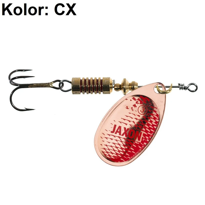Błystki obrotowe Jaxon Holo Select Troffy z charakterystycznym szerokim skrzydełkiem.