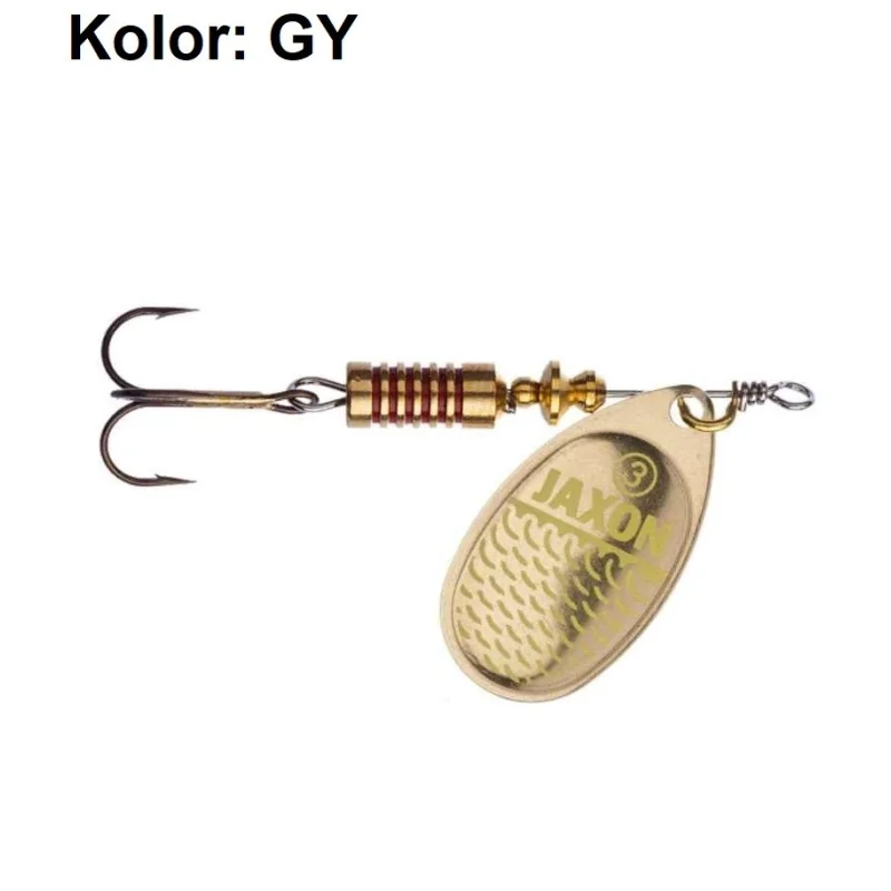 Błystki obrotowe Jaxon Holo Select Classic Flash A z motywem rybiej łuski wytrawianym na powierzchni skrzydełka.