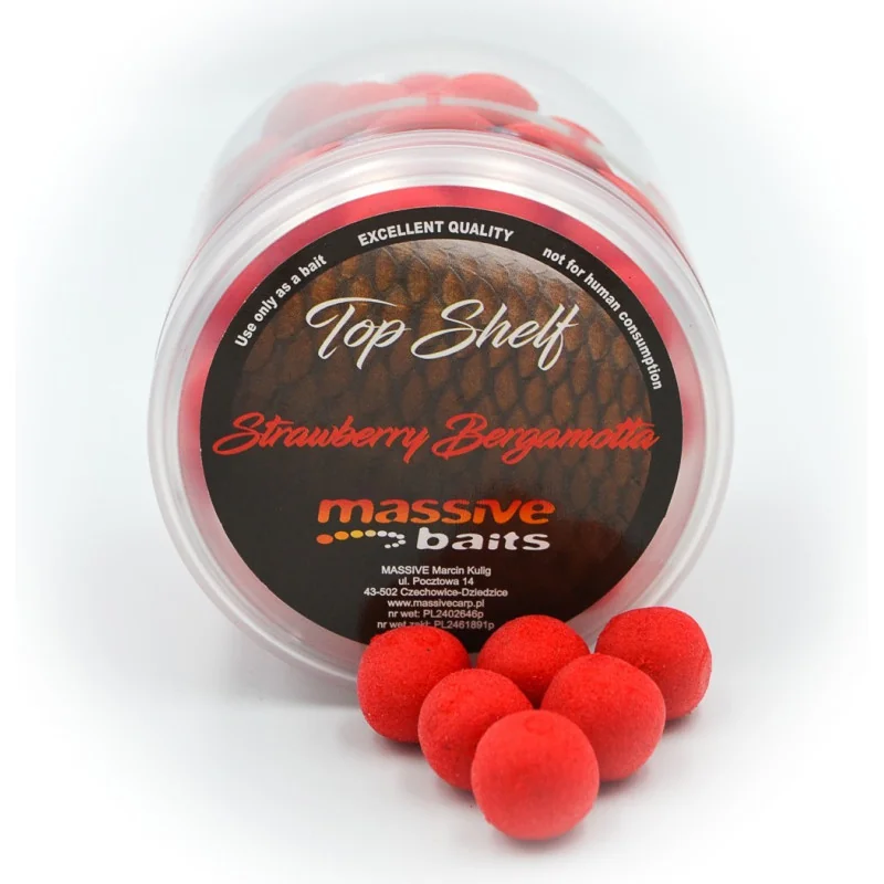 POP-UPS TOP SHELF wykonane ręcznie. Charakteryzują się długą pływalnością, doskonałą strukturą. Dobrze przyjmują i jednocześnie intensywnie uwalniają aromaty. Wykonane z wyjątkową starannością i dbałością o kształt, kolor i aromat. Dodano do pop up mixu dużą dawkę skoncentrowanych aromatów płynnych i proszkowych. Uzyskano przez to doskonałą przynętę pływającą, która nie wymaga już dipowania i dopalania jakimkolwiek atraktorem. Kulki POP-UPS można śmiało przebijać i kroić na połówki, przy całkowitym zachowaniu właściwości pływających. Kulki występują w 10 smakach, dopasowanych do serii przynęt TOP SHELF. Opakowanie: 200ml