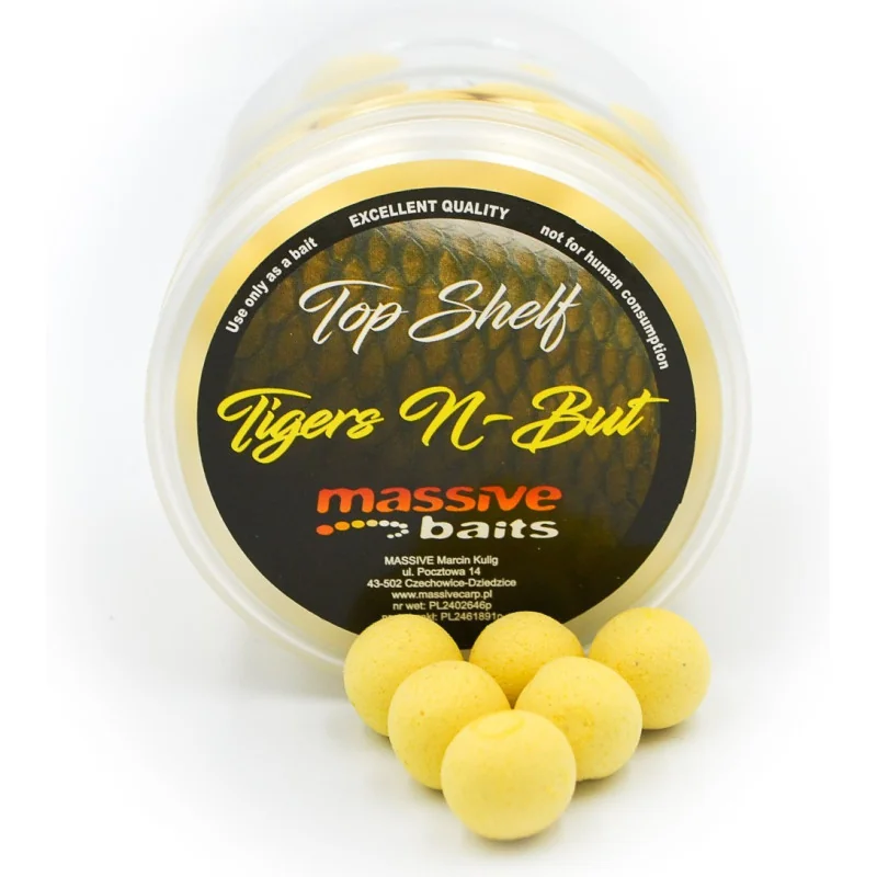 POP-UPS TOP SHELF wykonane ręcznie. Charakteryzują się długą pływalnością, doskonałą strukturą. Dobrze przyjmują i jednocześnie intensywnie uwalniają aromaty. Wykonane z wyjątkową starannością i dbałością o kształt, kolor i aromat. Dodano do pop up mixu dużą dawkę skoncentrowanych aromatów płynnych i proszkowych. Uzyskano przez to doskonałą przynętę pływającą, która nie wymaga już dipowania i dopalania jakimkolwiek atraktorem. Kulki POP-UPS można śmiało przebijać i kroić na połówki, przy całkowitym zachowaniu właściwości pływających. Kulki występują w 10 smakach, dopasowanych do serii przynęt TOP SHELF. Opakowanie: 200ml