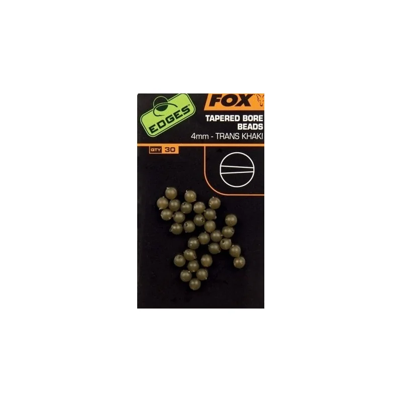 FOX Edges Tapered Bore Beads to gumowe kuleczki o średnicy 4mm z zwężającym się otworem. Mają wszechstronne zastosowanie, jednakże zaprojektowane zostały specjalnie pod kątem wszelkich mocowań leadcoru.