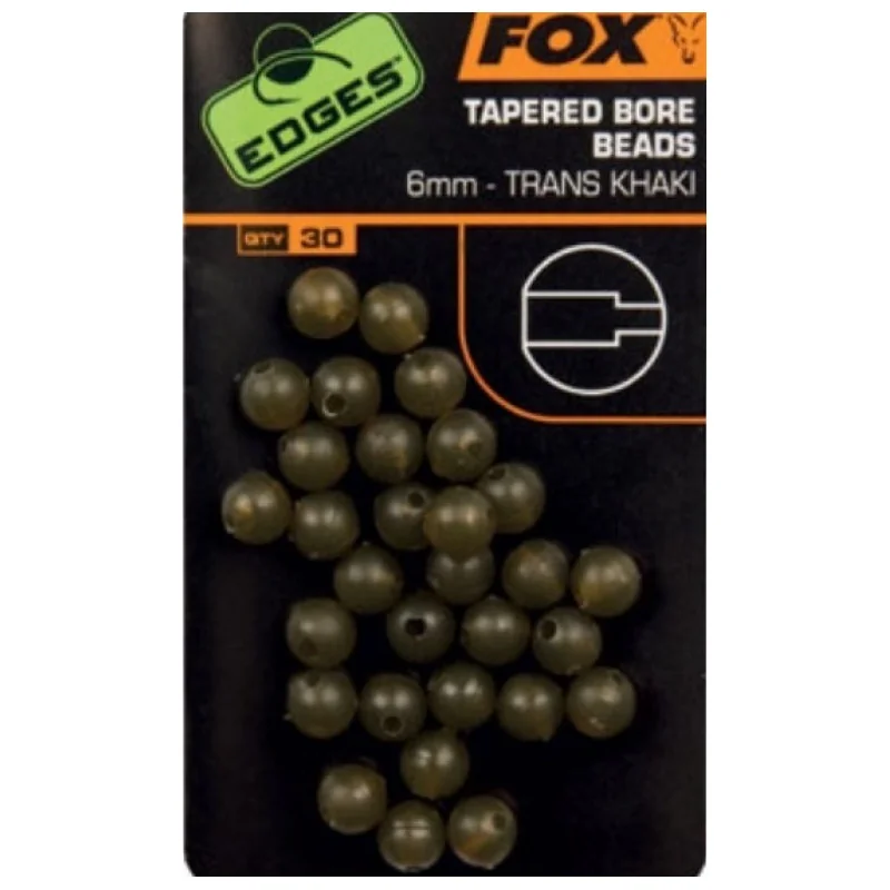 FOX Edges Tapered Bore Beads to gumowe kuleczki o średnicy 4mm z zwężającym się otworem. Mają wszechstronne zastosowanie, jednakże zaprojektowane zostały specjalnie pod kątem wszelkich mocowań leadcoru.
