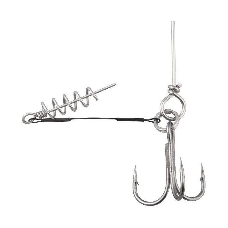 Dozbrojki połączone z korkociągiem, ułatwiającym precyzyjne zamontowanie do miękkiej przynęty. Cztery długości, wybrane do gum o wielkości od 15 do 25 cm i cztery wielkości kotwic DRAGON V-POINT, które zapewnią skuteczne zacięcie. Mocny przypon A.F.W. Surstrand 1x7 o wytrzymałości 27 kg, w czarnej otulinie nylonowej, wytrzyma każdy hol.
