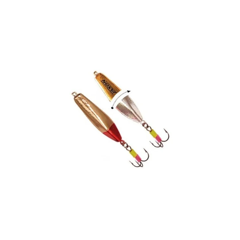 Innym atutem jest prowokujący kolor czerwony u szczytu błystki. Za pomocą kółek łącznikowych kotwica oddalona jest od błystki, a jej swobodny ruch dodatkowo pobudza niezdecydowane drapieżniki. Kotwica może być ozdobiona czerwonym chwostem, co czyni z tej błystki jedną z lepszych przynęt na zimowe okonie, zwłaszcza na pierwszym lodzie.