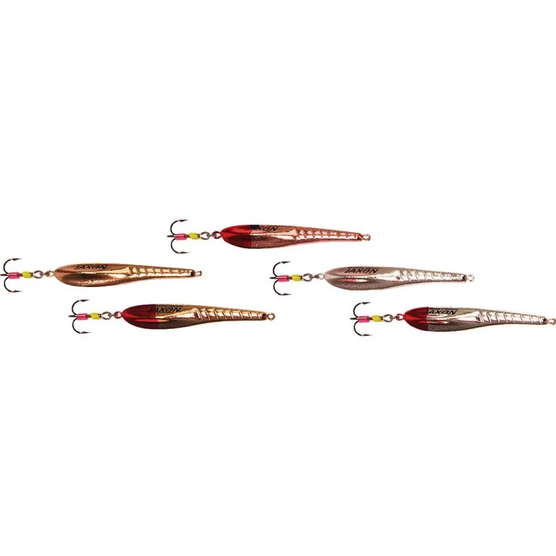 Nowość na rynku błystki podlodowe Jaxona. Kolory wszystkie charakterystyczne w wędkarstwie podlodowym. Różne kolory pomogą nam dobrać błystkę do warunków pogodowych i widoczności pod lodem zależnej od warstwy śniegu na lodzie. Dodatkowo prowokujący kolor czerwony u szczytu błystki.