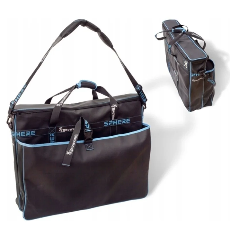 Wygodny sposób na przenoszenie siatek, bocznych tacek i innych dużych przedmiotów jak sita. Mieści 2 duże lub 3 standardowe siatki wraz z podbierakami oraz bocznymi tackami. Wewnętrzne szwy zamkniętej na zamek głównej kieszeni na siatki są zgrzane, co zapobiega przedostawaniu się wody. Obszerna przednia kieszeń z zamknięciem na pasek i klamrę Podbity, wygodny pasek na ramię. Materiał: 6x 300D Polychlorid